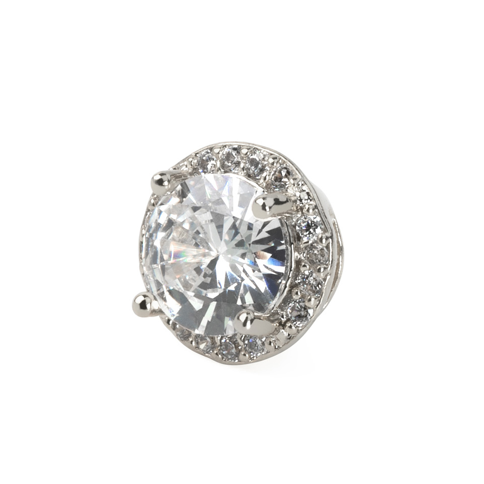 Centralnym punktem jest fasetkowy kamień otoczony małymi cyrkoniami, które nadają jeszcze większego blasku tej biżuterii.