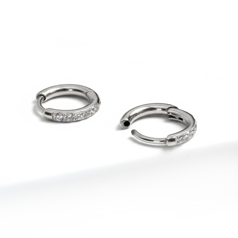 Odkryj swój nieodłączny element biżuterii: wysokiej jakości kółka huggies z tytanu zdobione cyrkoniami. Wykonane z wysokiej jakości tytanu, są niezwykle trwałe, hipoalergiczne i lekkie dla całodziennego komfortu. Wspaniałe cyrkonie dodają urzekającego blasku, biżuteria jest w pełni wodoodporna, zatem nigdy nie musisz jej zdejmować. Kółka sprzedawane parami, stanowią idealne połączenie luksusu i codziennego noszenia.