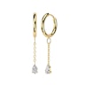 Each hoop holds a teardrop stone suspended by a delicate chain, giving it extra movement and shimmer with every turn of your head. The prong setting keeps the stone secure, while the hinge lock makes them super easy to click in place.