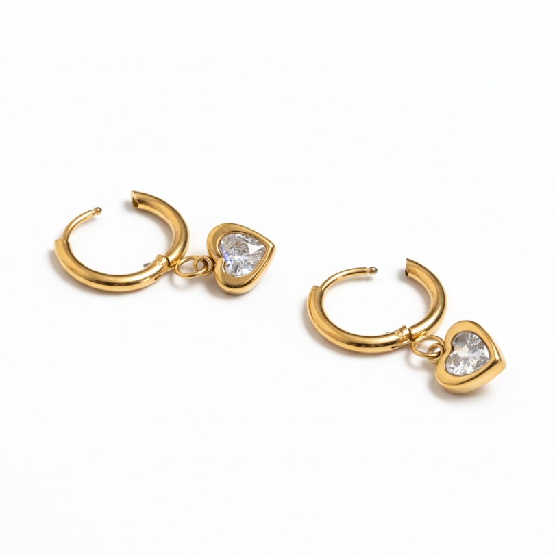 Para obręczy z wiszącymi serduszkami dodaje zabawnego akcentu twojemu codziennemu lookowi. Każde kółko ma małą zawieszkę w kształcie serca, która porusza się razem z tobą. Wykończone zapięciem na zawias, łatwe do założenia i zdjęcia, dzięki czemu świetnie sprawdzą się, gdy plan dnia zamienia się w wieczór. Dostępne w złotym i srebrnym kolorze.