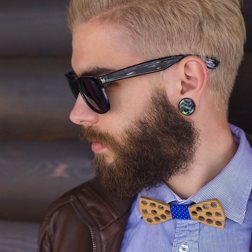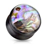 Ten plug wykonany jest z drewna i składa się tylko z jednego kawałka. Nie posiada dodatkowych gwintów ani innych elementów, które można łatwo zgubić. Przednia część biżuterii zdobiona jest masą perłową Paua. Zarówno drewno jak i masa perłowa są materiałami organicznymi, dlatego warto pamiętać że jeśli zamówisz dwa będą się nieco różnić między sobą. Macica perłowa charakteryzuje się różnymi kolorami i strukturą, co czyni ten plug wyjątkowym. Masa została przyklejona do pluga, a następnie pokryta grubą warstwą akrylu, który ją chroni. Biżuteria oferowana jest w różnych rozmiarach, najmniejszy to 6 mm, a największy 16 mm. Jak już wcześniej wspomnieliśmy, plug nie posiada gwintów lub dodatkowych części, zatem umieszczenie go w otworze wymaga praktyki. Wystarczy, że rozciągniesz delikatnie otwór ucha i umieścisz plug w środku. Pamiętaj, że drewno nie lubi wilgoci, dlatego radzimy zdejmować go podczas kąpieli.