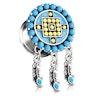 Jeśli interesujesz się historią starożytnych Azteków i kojarzysz ich charakterystyczne piramidy, sprawdź ten plug, bo jest on odzwierciedleniem tej kultury. Zauważysz w nim drobne, akrylowe koraliki w niebieskim i żółtym kolorze. Żółte, najbardziej zewnętrzne symbolizują schody na szczyt piramidy. Wokół niej, widać warstwę niebieskiej, emaliowanej powierzchni, a krawędź pluga zdobią nieco większe, akrylowe kulki w niebieskim kolorze. Poniżej widać trzy, swobodnie wiszące pióra, które na dole zdobione są plamkami z niebieskiej emalii.