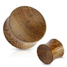 Ten plug, który widzisz na zdjęciu jest wykonany z drewna, które jest organicznym materiałem. Ten typ drewna nazywany jest wężowym, być może ze względu na swoją strukturę, która przypomina skórę węża. Jest to unikalny wzór i nie znajdziesz dwóch takich samych plugów. Linie, które tworzą strukturę mają falistą formę i są zaznaczone innym tonem niż podstawowy kolor biżuterii. Dominują brązowe i czerwone odcienie z czarnymi liniami. Są one wyraźne zarówno z przodu jak i z tyłu, a najlepiej widać je w dobrym świetle.