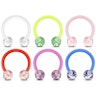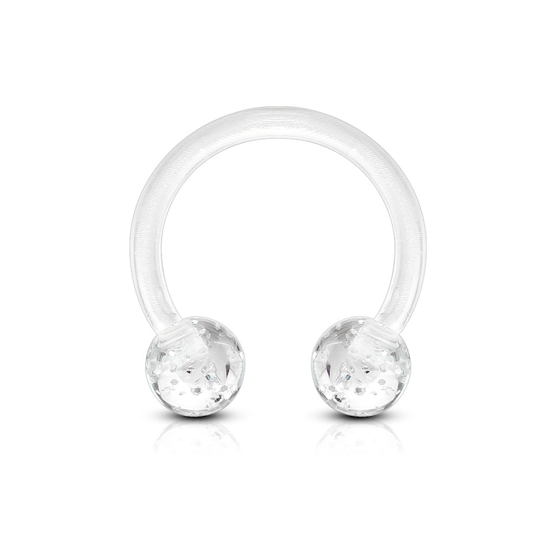 Na zdjęciu prezentujemy świetne podkówki wykonane z akrylu, które z dwóch stron są zakończone brokatowymi kulkami. Podkowy są dostępne w różnych kolorach m.in. niebieskim, czerwonym lub różowym. Warto zaznaczyć, że kolory podkówki nie będą takie same jak kulki. Spójrz na powyższe zdjęcie aby dostrzec różnicę. Materiał z jakiego są wykonane podkowy to akryl, który jest bezpieczny dla skóry oraz elastyczny, co pozwoli na łatwiejsze umieszczenie go w przekłuciu.