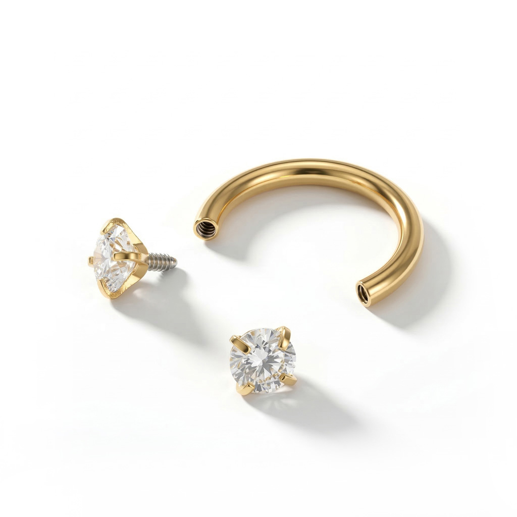 Jak już wcześniej wspomnieliśmy, kamienie są przykręcane do podkowy, co oznacza, że ma ona gwint wewnętrzny. Jest to o wiele bardziej wygodne, gdyż nie podrażnisz swojej skóry podczas zakładania kolczyka.
