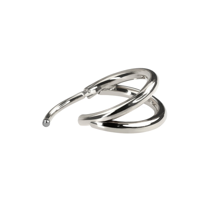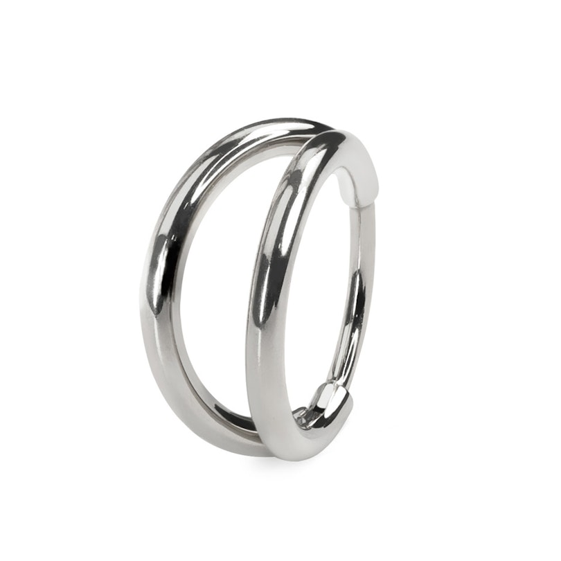 To proste kółko ma dwie obręcze, które łączą się w jedno kółko i przechodząc przez piercing nadają wrażenie dwóch obręczy.