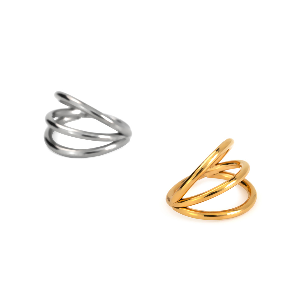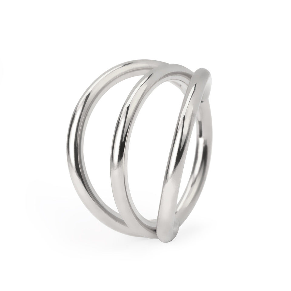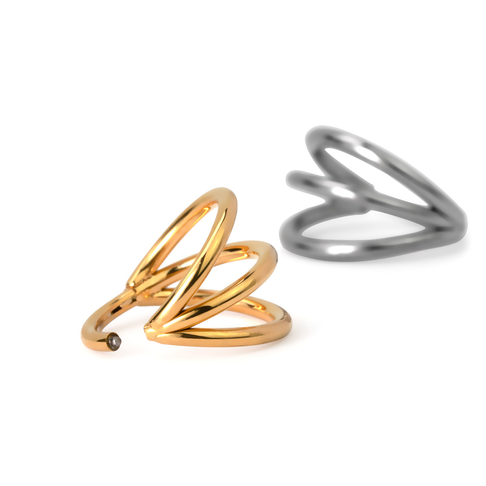 To proste ale efektowne kółko zbudowane jest z trzech obręczy, które łączą się w jeden element w momencie umieszczenia go w przekłuciu.