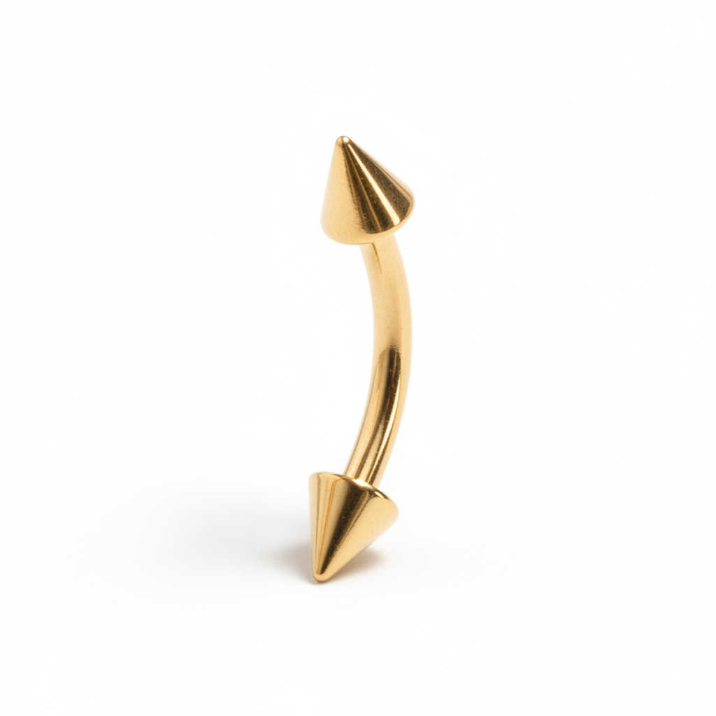 Biżuteria jest wykonana ze stali chirurgicznej, która została pokryta warstwą złota, dzięki temu jest błyszcząca i elegancka. Na obu końcach pręcika znajdują się dwa kolce, w przypadku mniejszego rozmiaru mają one 3 mm, natomiast większy rozmiar ma 4 mm.
