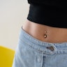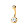 Chciałabyś dodać nową biżuterię do twojej kolekcji pępkowej? Spójrz na ten pozłacany model z kamieniami w obu kulkach.