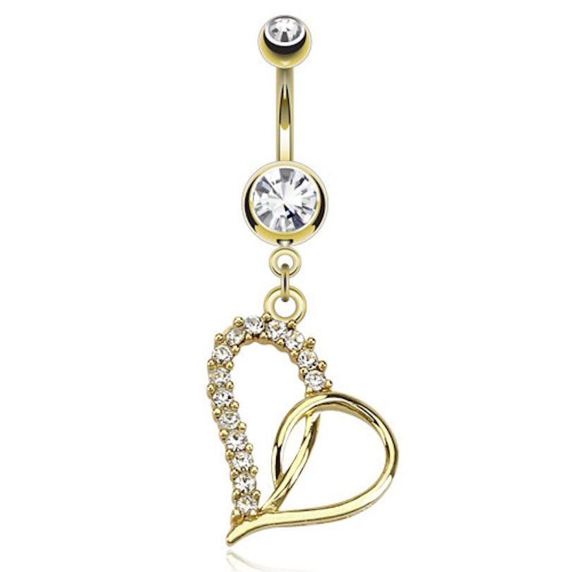 Pozłacany kolczyk do pępka z sercem i przezroczystym kamieniem