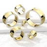 Biżuteria jest wykonana z pozłacanej stali chirurgicznej i ozdobiona małymi cyrkoniami osadzonymi na krawędzi tunelu.