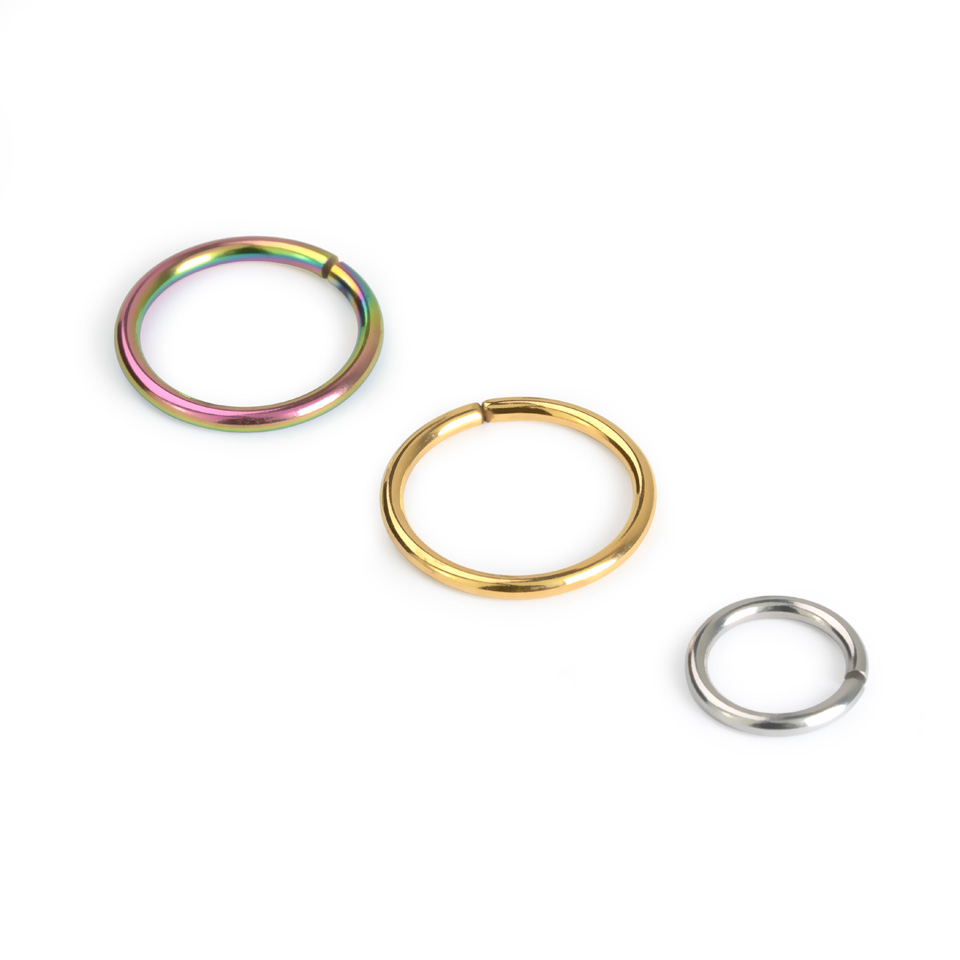 Kółko jest dostępne w kilku rozmiarach i kolorach, wybierz taki, by pasował do twojego przekłucia. Do tragusa najlepsze będzie kółko o średnicy pomiędzy 6 a 8 mm, a do piercingu ust - pomiędzy 8 a 10 mm. Oczywiście wszystko zależy od indywidualnych preferencji, a także od rozmiaru warg.
