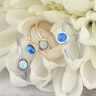 Na pierścieniu znajduje urokliwy opalowy kamień. Jest to w rzeczywistości syntetyczny opal. Podobnie jak w przypadku wyboru materiału, wybierasz również czy chcesz otrzymać biały opal, czy niebieski opal. Biały opal ma odcienie od czerwonego, żółtego do zielonego, ale cały kamień wydaje się biały. Niebieski przylega do niebieskich odcieni, takich jak jasnoniebieski, turkusowy i granatowy.