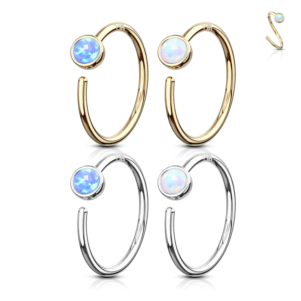 Kolczyk, po który klikasz, wykonany jest z 14-karatowego złota. Możesz wybrać zwykłe żółte złoto lub wariant białe złoto. Kółko jest pierścieniem bez końca, co oznacza, że nie ma widocznych końców na pierścieniu. Znajduje się jednak mały otwór, aby móc włożyć biżuterię do swojego przekłucia. Końce pierścienia łatwo się skręcają, dzięki czemu pierścień ma kształt twisterowego pierścienia.