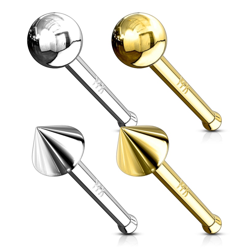 Możesz zdecydować, czy ten 14k piercing ma być zakończony kulką, lub też małym kolcem, które ślicznie ozdobią twój nos.