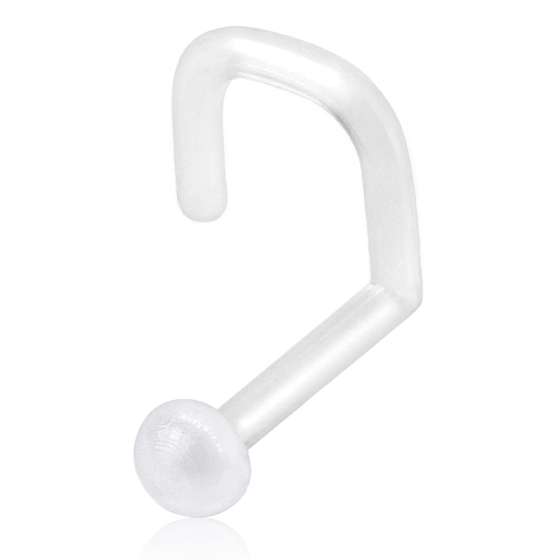 Ten przezroczysty retainer-zatyczka do nosa zrobiony jest z PTFE. Ten typ kolczyka nazywa się "retainerem" i jest on doskonały w momencie kiedy musisz ukryć swój piercing. Możesz nosić go do pracy, do szkoły albo jak idziesz z babcią na herbatę.