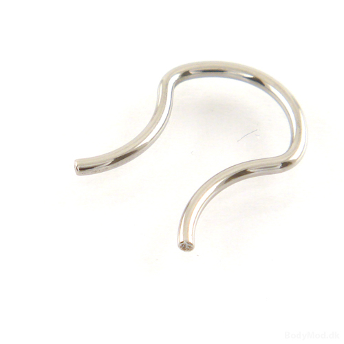 Wkładanie (piercing septum nosa) udaje się bez problemów. Mimo że mam mały nos, mogę bez problemu obrócić retainer w górę. Wskazówka: trochę pociągnij nos do przodu. Wada: siedzi luźno, a więc trochę krzywo w nosie, końce są skierowane w stronę zatok. To jest dla mnie zbyt niebezpieczne na co dzień, jeśli uderzę w nos. Teraz używam małego retainera akrylowego z tego sklepu, dobrze się trzyma i naprawdę jest niewidoczny!