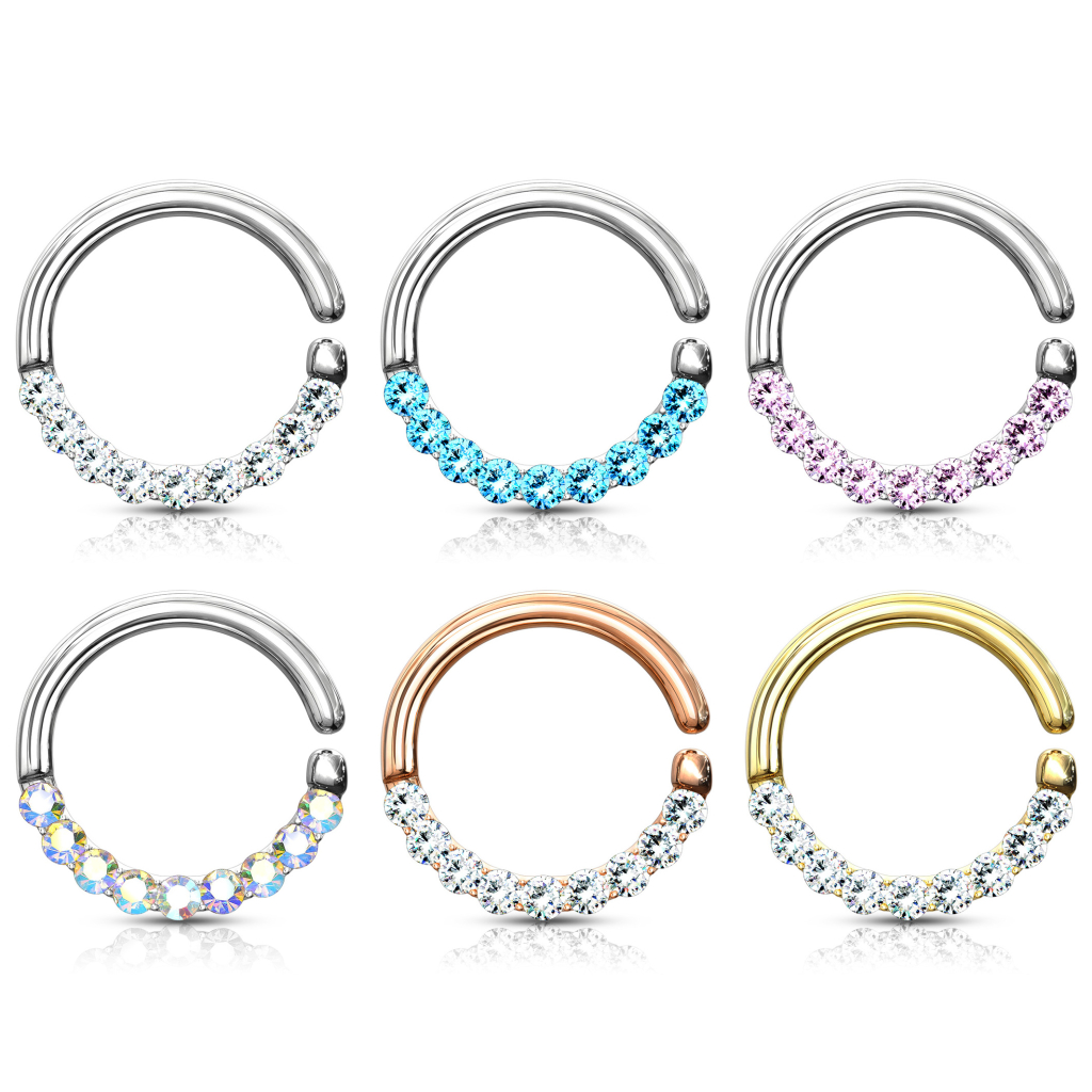 Kolczyk, który widzisz na zdjęciu, można używać nie tylko do nosa, lecz również do innych przekłuć, np. piercingu ucha. To wszystko dlatego, że pierścień jest wykonany z jednego kawałka metalu z małym otworem z boku i nie posiada mechanizmu zamykającego. Sposób otwierania i zamykania biżuterii polega na obróceniu końców kółka - unikając w ten sposób deformacji pierścienia w miarę upływu czasu poprzez jego nadmierne rozciągnięcie.