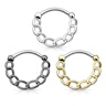 W dolnej części septum jest ozdobione wzorem łańcuszka, który ma nieco surowy wygląd. Każde z oczek jest pojedynczo spawane, a łańcuch pozostaje nieruchomy i zachowuje zaokrąglony kształt, dzięki czemu ładnie prezentuje się w przegrodzie nosa.