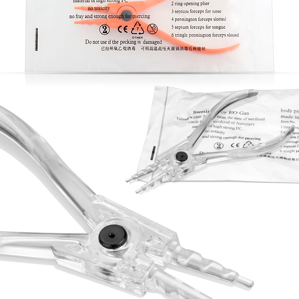 Oto szczypce do otwierania kółek, które dostarczamy w sterylnej torebce wypełnionej gazem. Oznacza to, że narzędzie jest od razu gotowe do użycia. Szczypce są wykonane z plastikowego tworzywa i dzięki temu są dużo lżejsze niż te normalne wykonane ze stali.