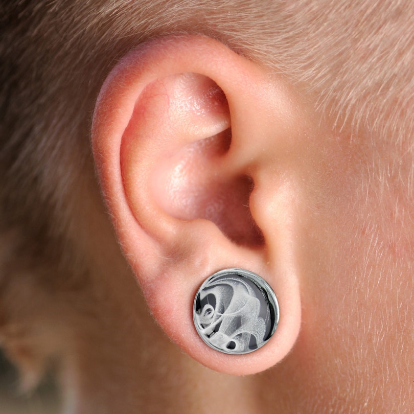 Kolczyk jest wykonany z przezroczystego szkła, a tył z czarnego, dzięki temu możesz dokładnie zobaczyć opary unoszące się w środku. Nie oczekuj prawdziwych oparów, to oczywiście tylko specjalny wzór. Różni się on w każdym kolczyku - opary zawsze układają się w odrobinę innym kierunku. Efekt jest tym lepszy, im większy rozmiar wybierzesz.