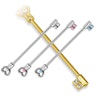 Aby umieścić ten kolczyk w piercingu musisz mieć dwa przekłucia przez które przechodzi pręcik. Ostatnim krokiem jest zamknięcie go z obu stron ładnym kluczykiem i sercem.