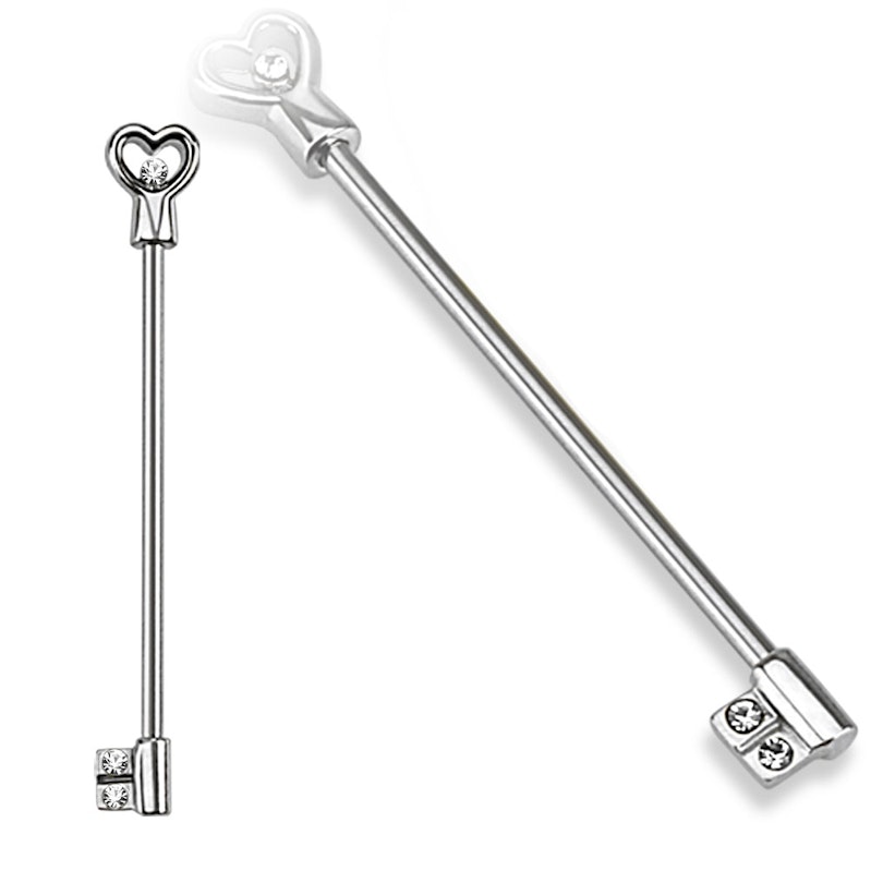 Smukły, lśniący i elegancki, taka sztanga będzię się pięknie prezentować w twoim uchu. Wzór ten jest słodki i kobiecy: sztanga w formie klucza zdobionego sercem.