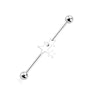Super ładna i wyjątkowa sztanga industrial wykonana z trwałego materiału jakim jest stal chirurgiczna. Nie ma co ukrywać, że biżuteria ze stali będzie wyglądać rewelacyjnie prze wiele lat. Sztanga jest ozdobiona trzema, pięcioramiennymi gwiazdami w różnych rozmiarach. Długość pręta mierzy 38 mm i należy go nosić w dwóch przekłuciach (w górnej i dolnej części ucha). Ten typ piercingu nazywany jest industrial.