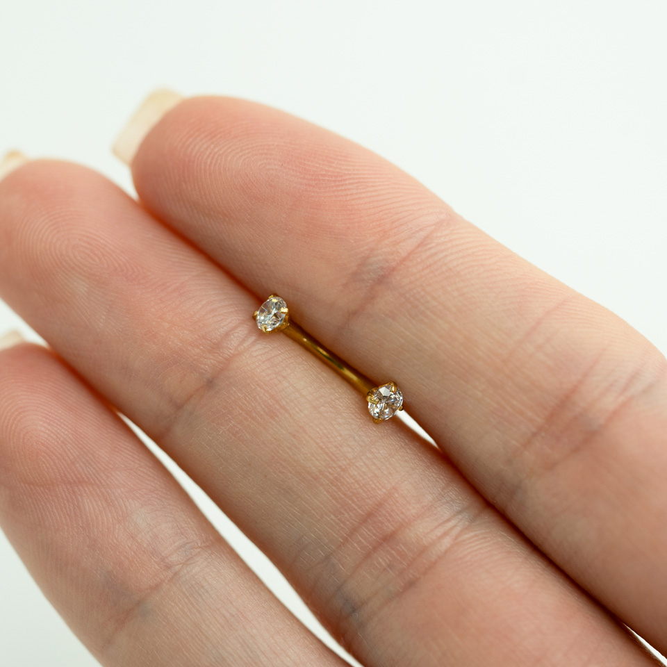 Biżuteria ma wewnętrzny gwint, dzięki któremu jest bezpieczna podczas zakładania lub zdejmowania. Skóra nie będzie podrażniona, kiedy przeprowadzasz pręcik przez otwór.