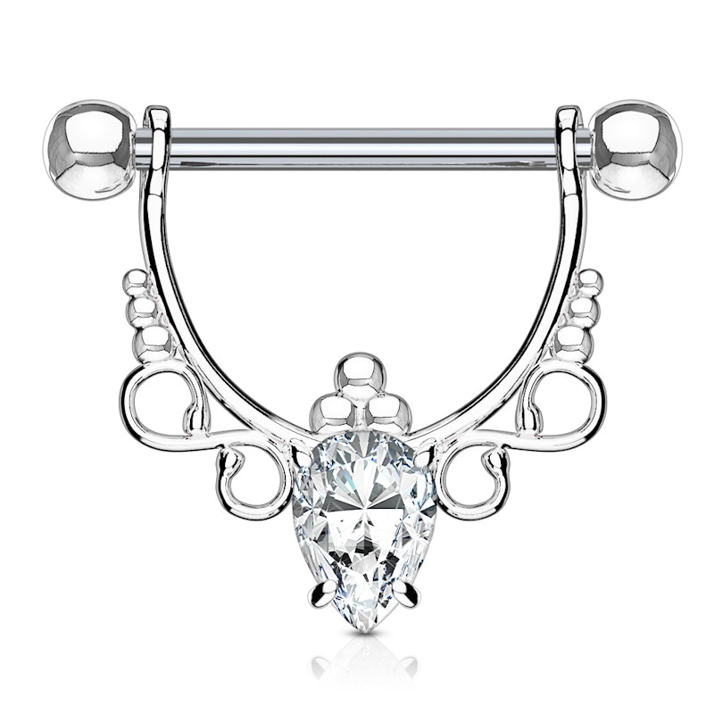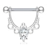 Ta biżuteria do sutka dostępna jest w srebrnym i złotym kolorze i wersji różowego złota, wszystkie zdobione przezroczystą cyrkonią. Złote warianty są powleczone warstwą 14k złota, a srebrny model pokryty rodem, co nadaje mu extra luksusu.