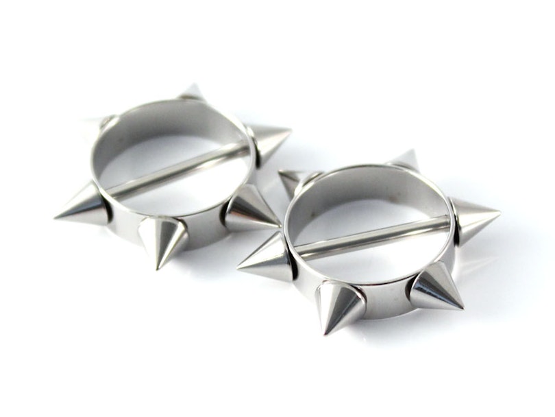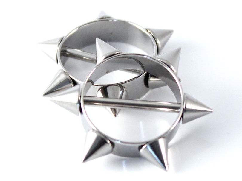 Ta tarcza z kolcami do sutka jest oryginalną i charakterystyczną biżuterią, która doda twojemu piercingowi pikanterii i seksownego wyglądu. Jeśli szukasz nieco drapieżnego wyglądu, ten kolczyk jest dla Ciebie.