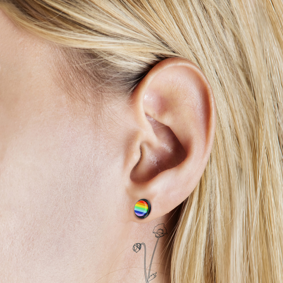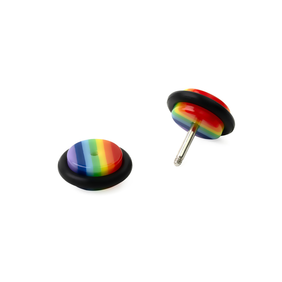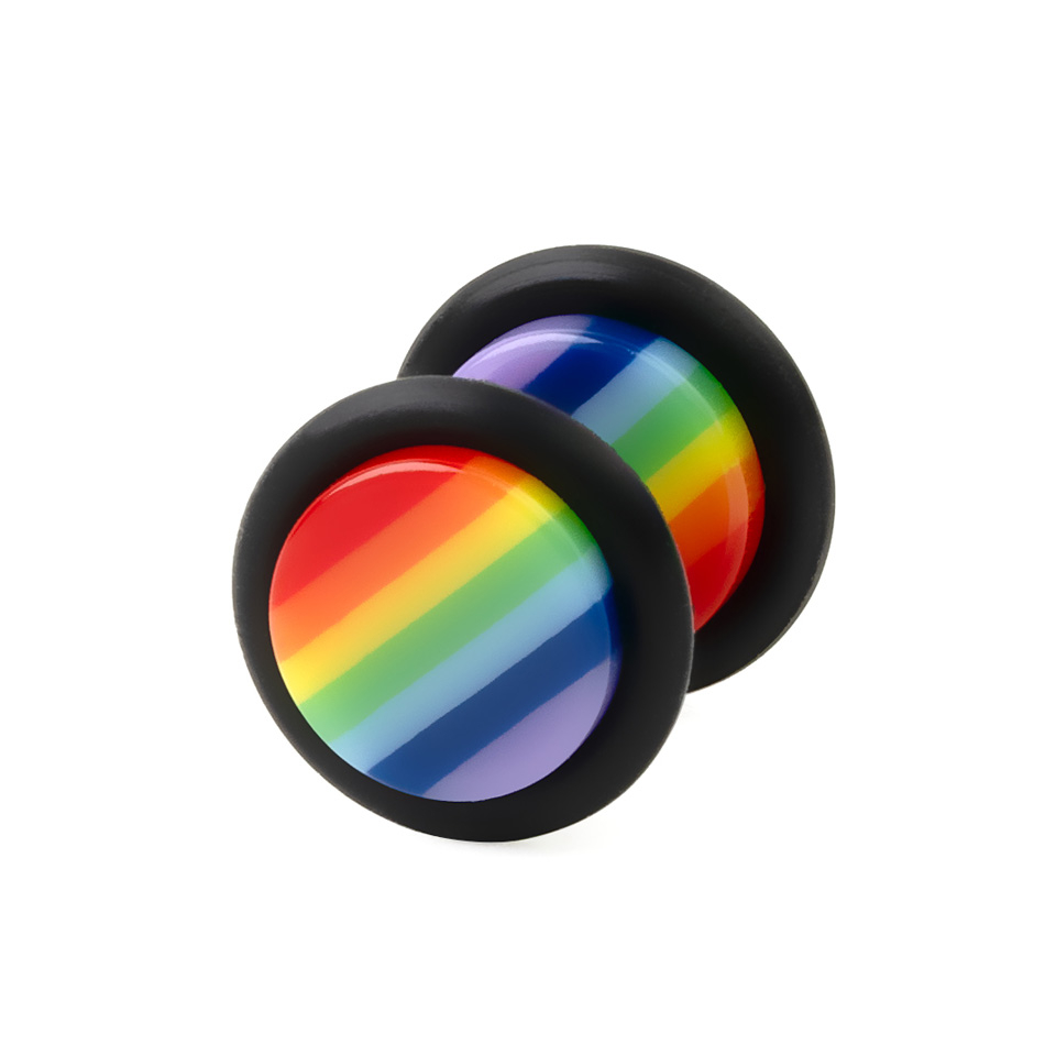 Jeśli myślałeś nad rozciągnięciem ucha, ale nie jesteś przekonany o efekcie końcowym, teraz masz możliwość zamówić tęczowy fake plug z kolczykiem.