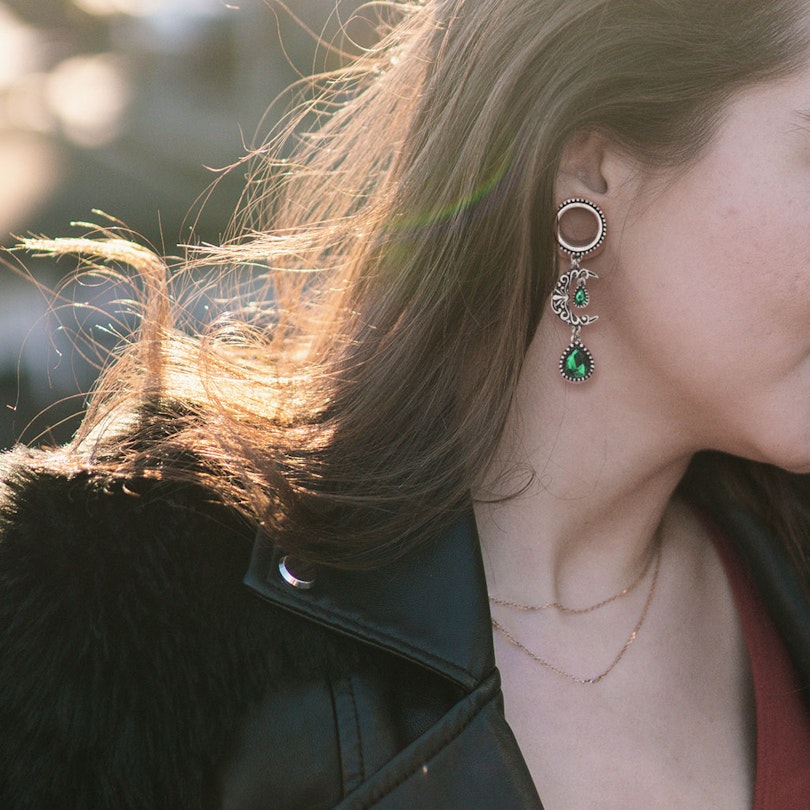 Większość tuneli składa się tylko z jednego elementu, ale ten model ma dodatkowe dekoracje w formie zawieszki, która znajduje się pod nim. Tunele są dostępne w kilku rozmiarach i to stanowi jedyną różnicę między nimi. Półksiężyc i kamienie w kształcie kropli mają taki sami rozmiar bez względu na wybraną średnicę.