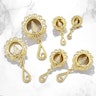 Tunel, który widzisz na zdjęciu oferujemy w dwóch wersjach: złotej i srebrnej. Są one w 100% identyczne z wyjątkiem koloru. Każdy z nich dostępny w sześciu rozmiarach do wyboru (od 6 mm do 16 mm). Zarówno kropla jak i całość kolczyka zmienia się proporcjonalnie w zależności od wybranego rozmiaru. Jeśli bliżej się przyjrzysz zauważysz nie jedną, ale dwie krople - jedna swobodnie wisi pod tunelem, a druga jest w nim uwięziona na górze i wykonana z masy perłowej. Krawędź tunelu zdobiona jest dodatkowo dziwacznymi, filigranowymi zawijasami, które tworzą ładny wzór i wykończenie.