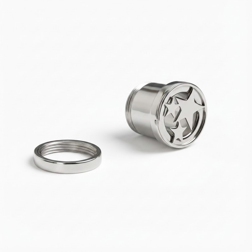 Wykonany ze stali chirurgicznej, jest trwały, wodoodporny i odpowiedni dla większości typów skóry. Zewnętrzny gwint sprawia, że obsługa jest prosta: włóż tunel, przykręć tylną nakrętkę i gotowe.