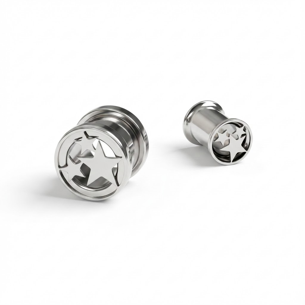 Tunel z trzema gwiazdkami wnosi zabawny akcent do rozciągniętych uszu. Trzy wycięte gwiazdki lśnią z przodu, nadając twojemu wyglądowi odważnego, ale luzackiego charakteru, który pasuje do codziennego stylu.