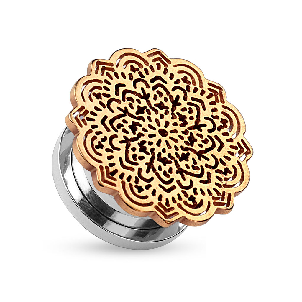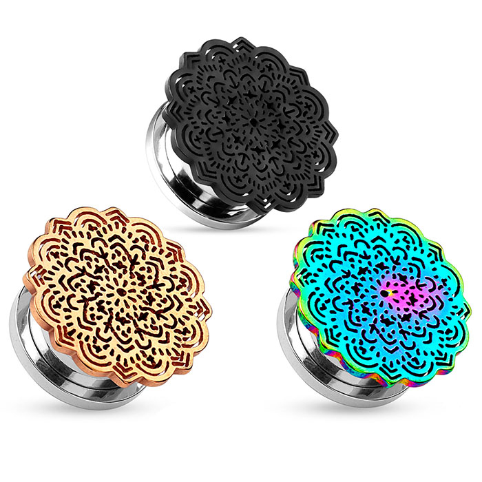 Tą szczegółowo zdobioną mandalę możesz wybrać w kilku dostępnych kolorach, wystarczy że zerkniesz na nasze menu obok zdjęcia. Kiedy nosisz ją w uchu jedynym widocznym elementem będzie tylko ona. Pozostała część biżuterii jest wykonana ze stali chirurgicznej i wyposażona w praktyczny gwint, który należy odkręcić przed umieszczeniem w otworze.