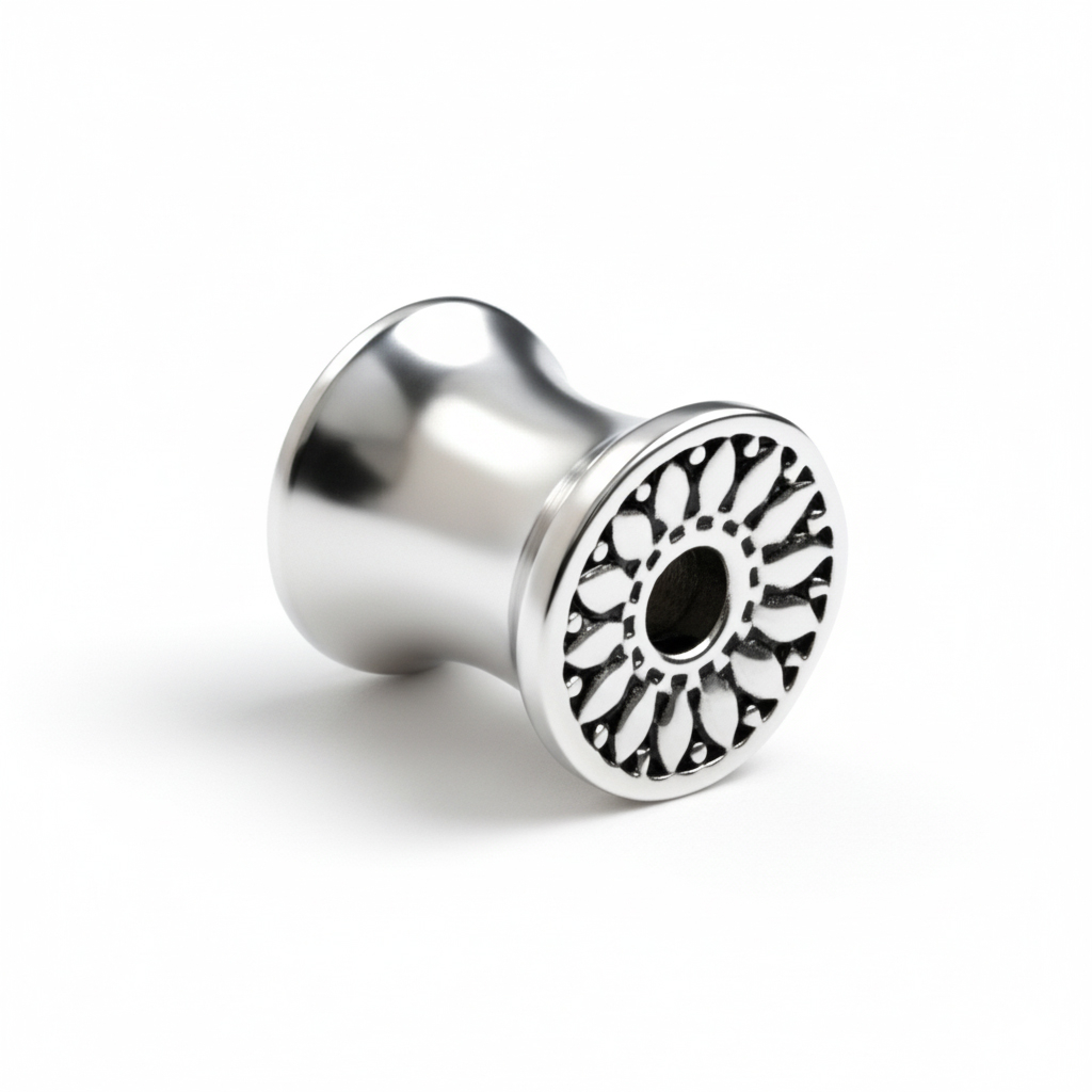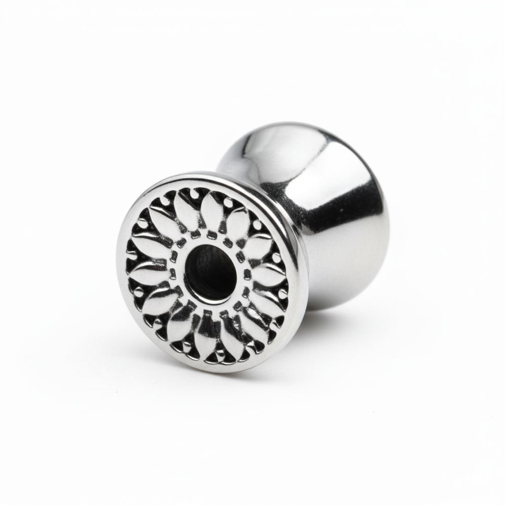 Wykonany ze stali chirurgicznej, jest trwały, wodoodporny i bezpieczny dla większości typów skóry. Rozchylone końcówki z obu stron trzymają go pewnie, bez gwintów i bez ceregieli, wsuwasz i gotowe.