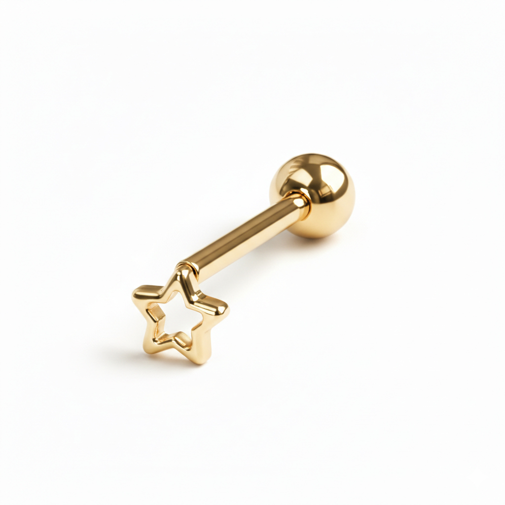Ta sztanga do języka z tytanu zdobiona jest gwiazdką. Kolczyk jest hipoalergiczny, zatem nadaje się dla osób o wrażliwej skórze. Gwint wewnętrzny pozwala na wprowadzenie gładkiego pręcika w przekłucie, a następnie dokręcenie go na miejscu.