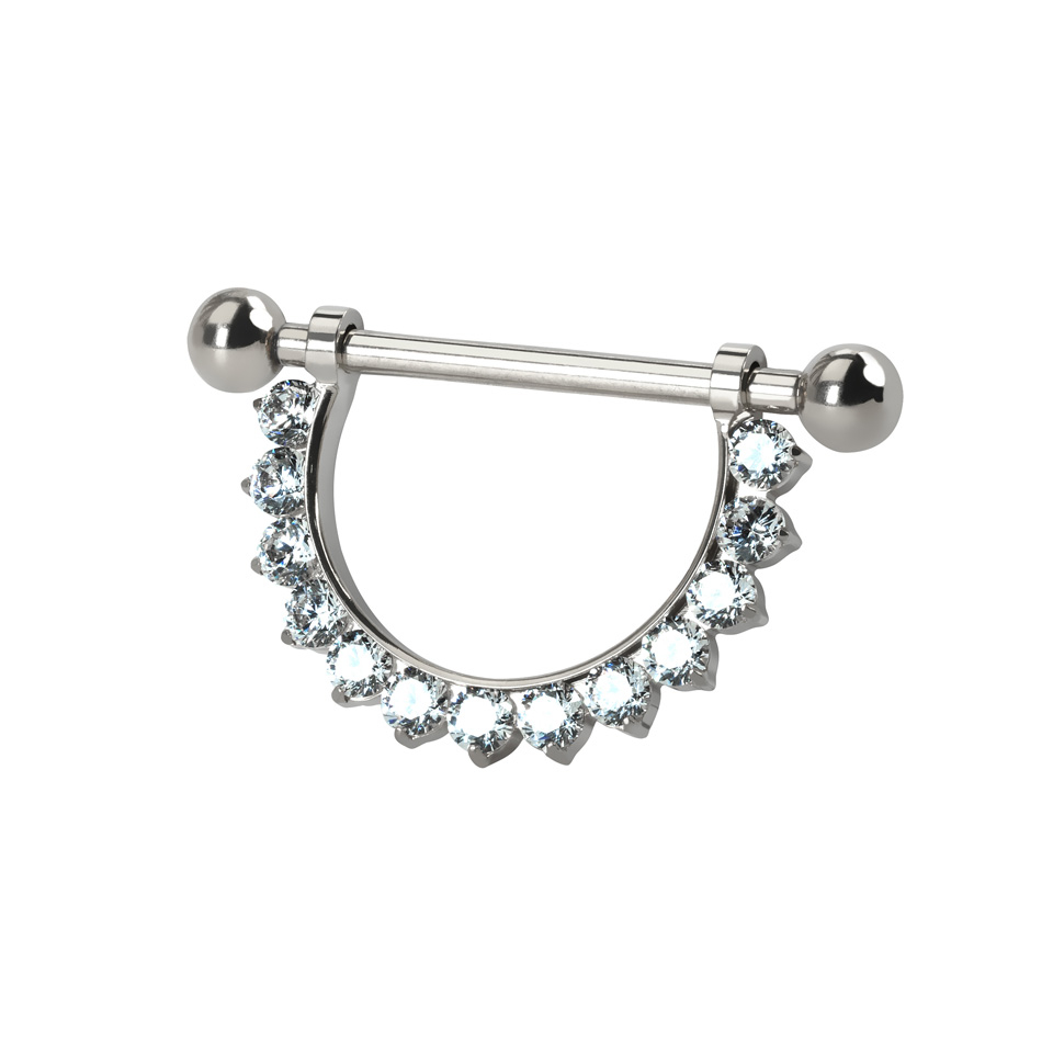Tytanowa sztanga w formie półokręgu z cyrkoniami