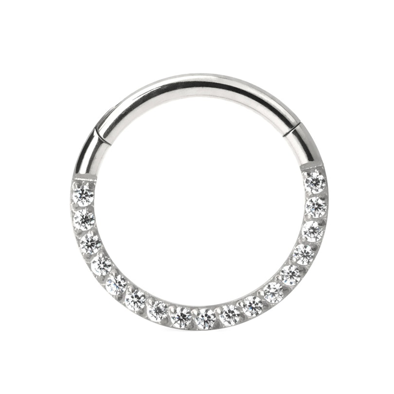 Tytanowe kółko z zawiasem i rzędem kamieni