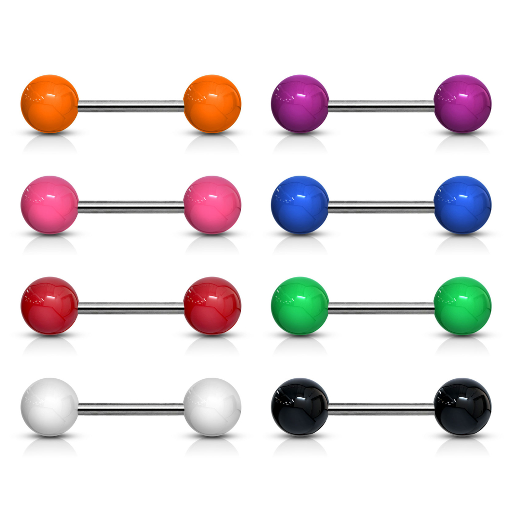 Nazwa: Tytanowy kolczyk do języka z kolorową kulką z akrylu