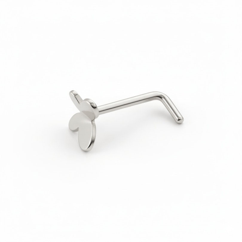Tytanowy sztyft do nosa z motylkiem to mały, zabawny akcent w twoim przekłuciu. Gładki kształt motylka leży płasko na skórze i łatwo go łączyć z innymi kolczykami, które już nosisz.