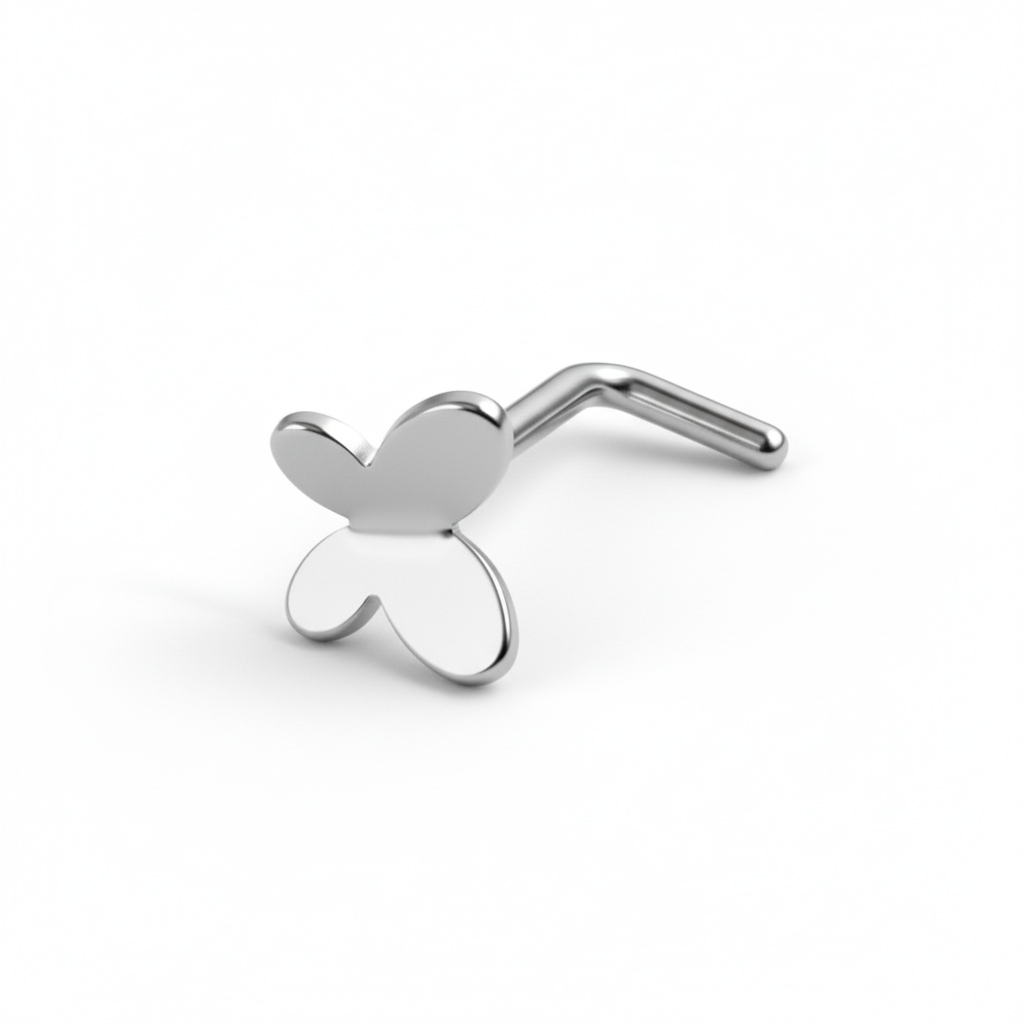 Tytanowy sztyft do nosa z motylkiem to mały, zabawny akcent w twoim przekłuciu. Gładki kształt motylka leży płasko na skórze i łatwo go łączyć z innymi kolczykami, które już nosisz.