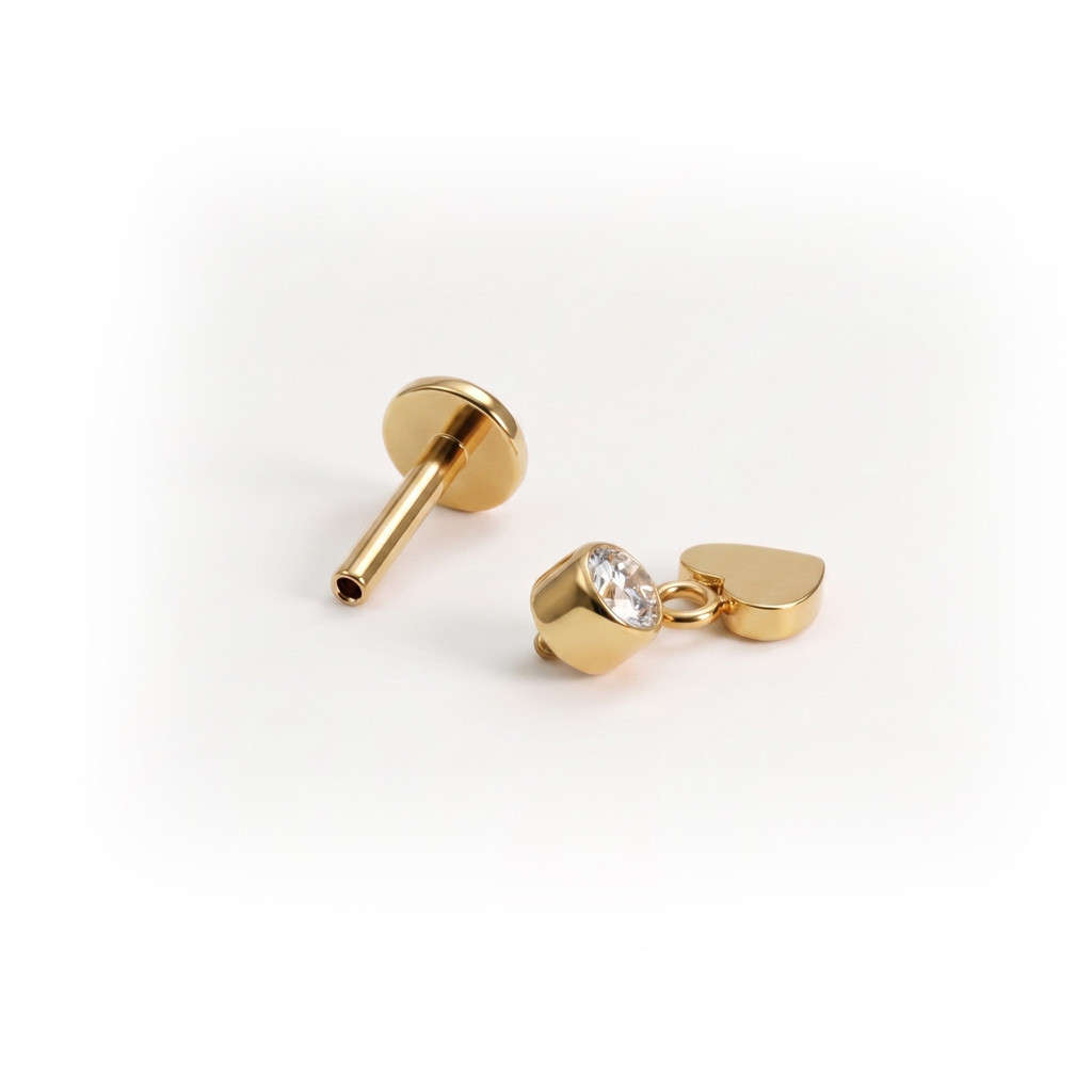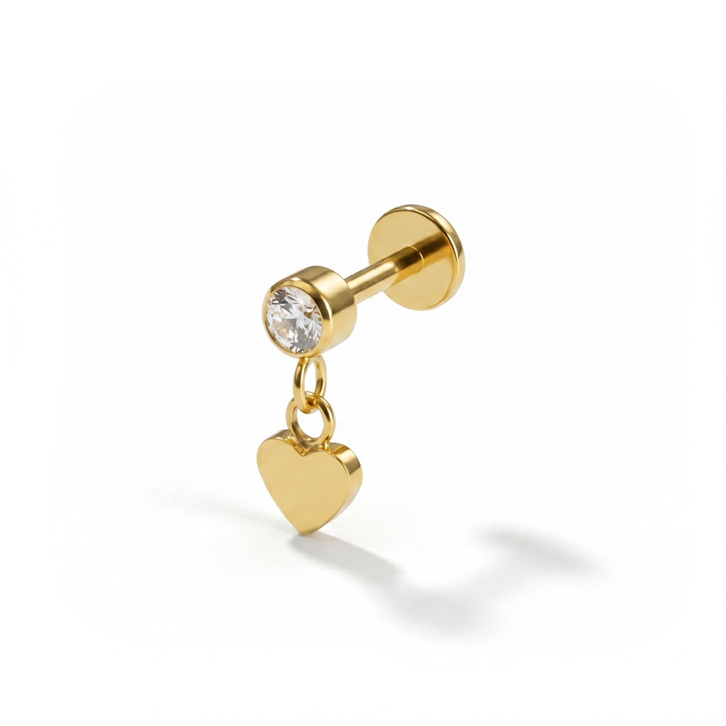 Tytanowy labret z zawieszką w formie serca