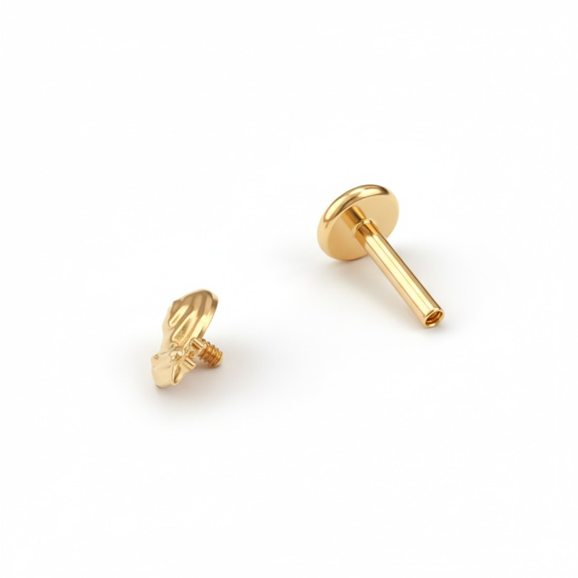 Tytanowy labret w kształcie ślimaczka dodaje małą dawkę zabawy do twojego układu piercingów. Dzięki maleńkiej spiralnej formie i płaskiemu profilowi siedzi wygodnie przy skórze i świetnie wygląda zarówno solo, jak i w zestawieniu z kilkoma kolczykami. Dostępny w złotym i srebrnym kolorze, dorzuca figlarnego akcentu, nie przytłaczając stylu.