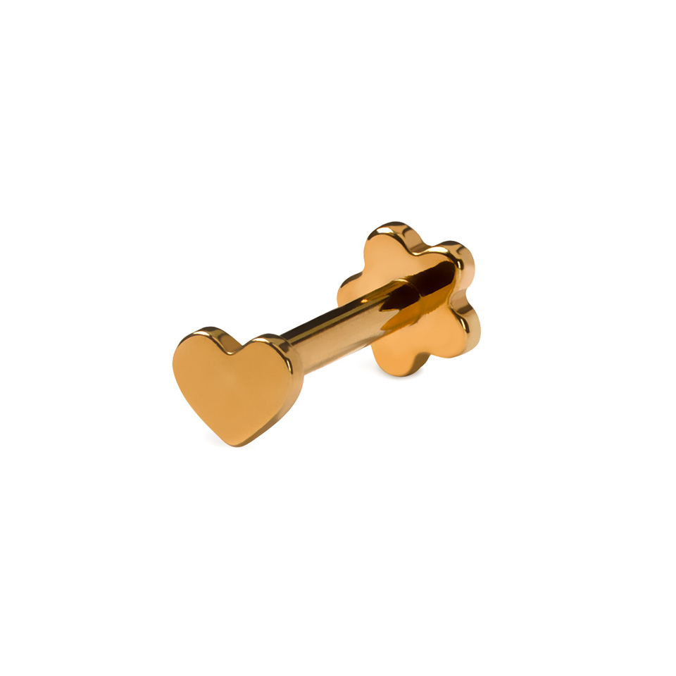 Tytanowy podwójnie zakończony labret z sercem i kwiatem
