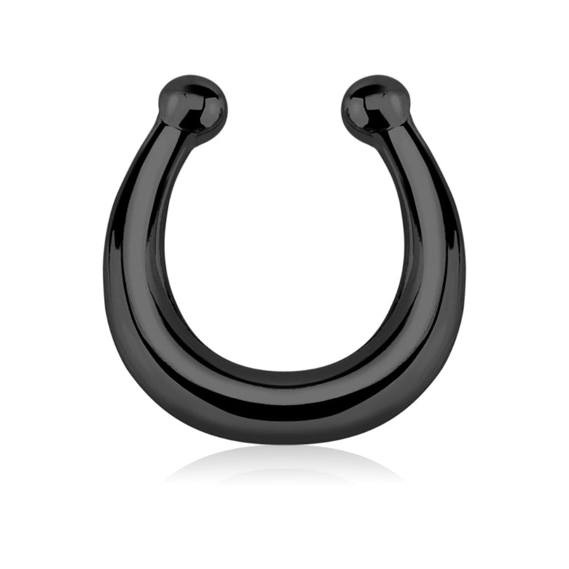 Kolczyki septum wyglądają świetnie, ale wiele osób nie ma odwagi na prawdziwe przekłucie w przegrodzie nosa. Na szczęście teraz masz możliwość nosić ten kolczyk bez konieczności prawdziwego piercingu. Jedyne co należy zrobić, to umieścić go w przegrodzie i lekko zacisnąć z dwóch stron. Dwie kulki na obu końcach nie tylko bezpiecznie utrzymują go na miejscu, ale zapewniają wygodę podczas noszenia.