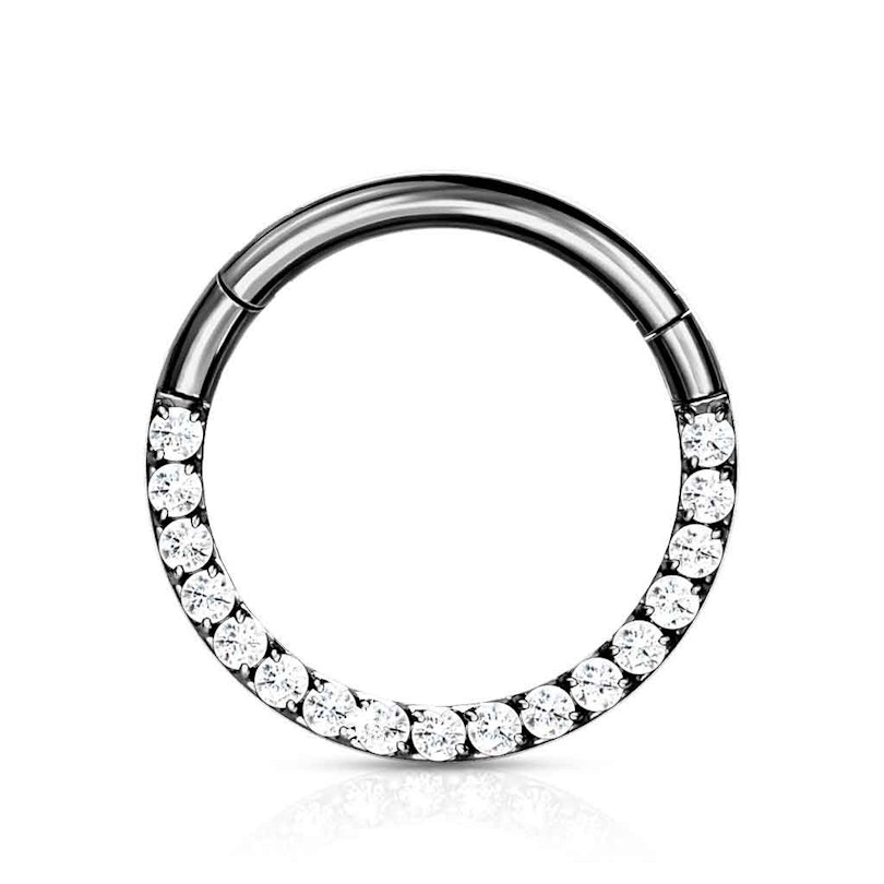 Tytanowe kółko z zawiasem i rzędem kamieni.