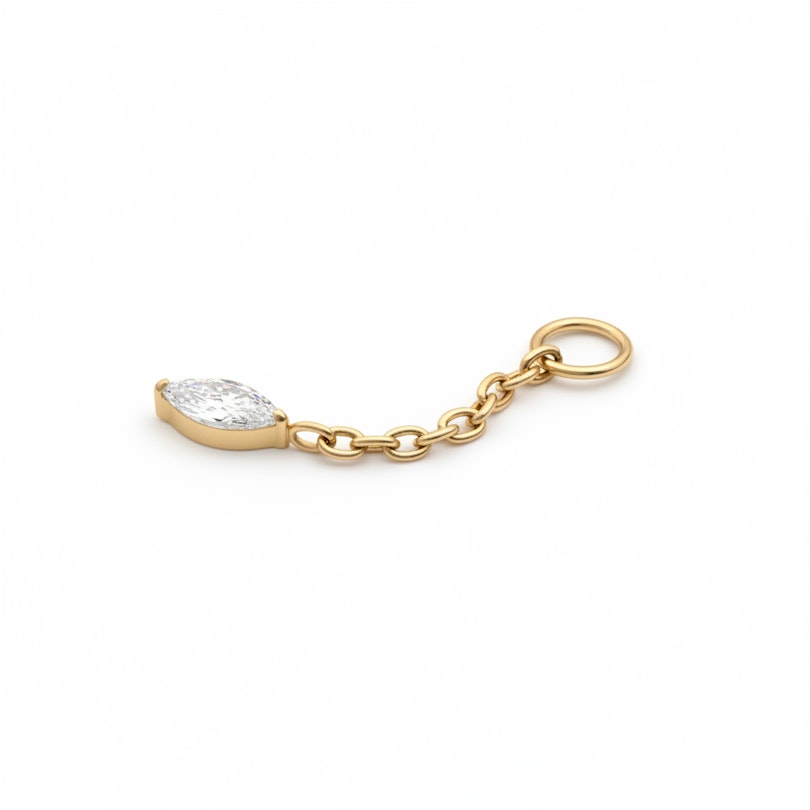 Zawieszka z owalnym kamieniem zachowuje prostotę, ale nigdy nie nudzi. Zwisając z delikatnego, tytanowego łańcuszka, owalny kamień porusza się lekko razem z Tobą, dodając Twojej biżuterii odrobinę życia, ale bez nadmiernego wysiłku. To detal, który sprawdzi się wszędzie, możesz wsunąć kółko na swój ulubiony kolczyk, o ile nie jest grubszy niż 3 mm.